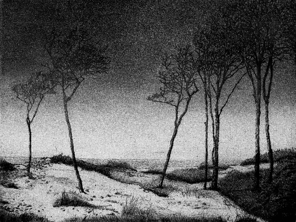 "Durch die Dünen III", Vernis mou/Aquatinta/Kaltnadel, 20 x 15 cm, 2017
